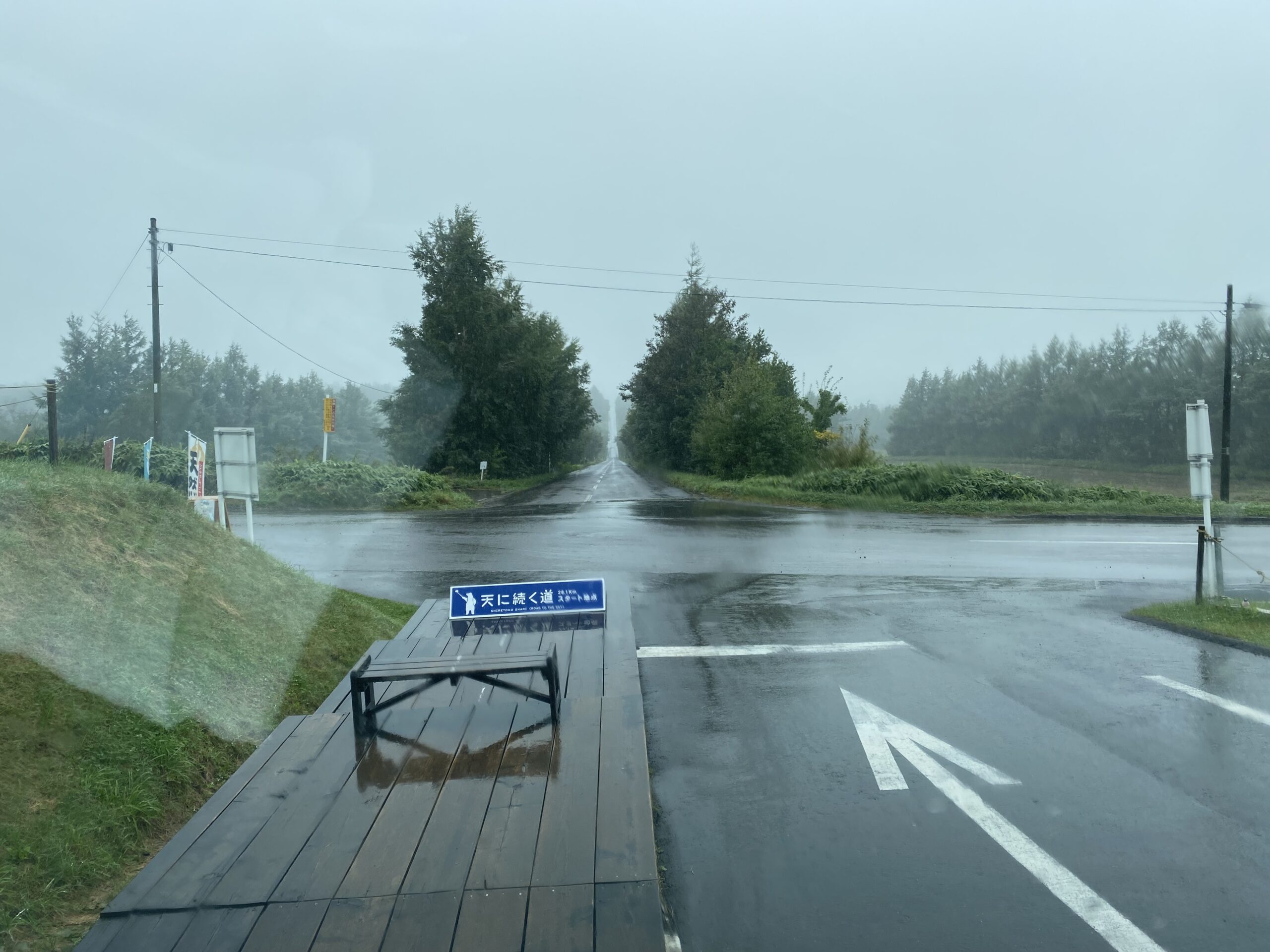 ビューポイントパーキング流氷街道・鱒浦での絶景を堪能した「いろはとあさきの父」。いよいよ、ハイエースで、この「天に続く道」を走ります!時刻は10:30頃。しかし…、空は、あいにくの 曇り空。時折、雨 もパラパラと降ってきます。うーん、これは、ちょっと残念…。私が期待していた、青空の下、どこまでも続く、まっすぐな道!という景色は、見ることができませんでした。しかし、それでも、この道のスケールの大きさは、十分に感じることができました。周りには、畑と防風林が広がり、遠くにはオホーツク海が見えます。まるで、北海道の大地を、独り占めしているかのような、そんな気分です。そして、この道、本当にまっすぐ!どこまでも、どこまでも、道が続いています。まるで、このまま、本当に天まで続いていくのではないか、そんな錯覚さえ覚えます。この「天に続く道」、晴れた日に、もう一度走ってみたい!そう、強く思いました。