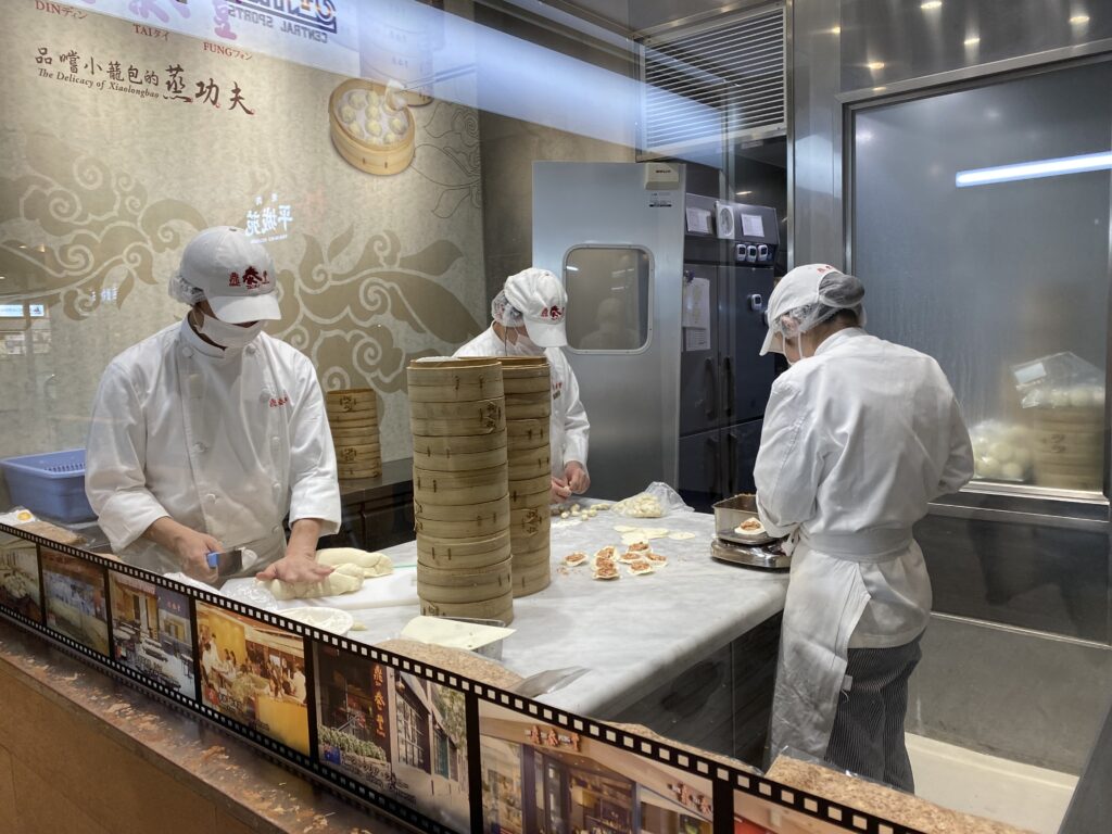 お店があるのは、流山おおたかの森S・C本館の3階。駅直結なので雨の日でも安心です。店内に入るとまず目に飛び込んでくるのが、ガラス張りのオープンキッチン!点心師さんたちが熟練の手つきで小籠包を包む様子は、まさに職人技。見ているだけで期待が高まります。