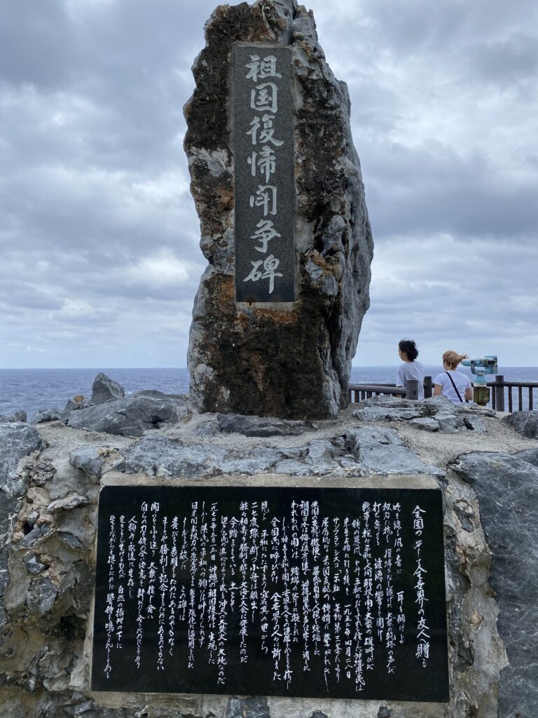 辺戸岬の中心に立つのが「祖国復帰闘争碑」です。1972年、沖縄が27年間のアメリカ統治から日本へ復帰したことを記念して建立されました。ここは、本土との一体性を訴える「かがり火集会」が繰り返し開かれた、復帰運動の象徴的な拠点でした。碑文には、復帰後も続く基地問題に対する沖縄の複雑な心情と平和への願いが刻まれており、単なる祝祭の碑ではない、歴史の重みを伝えています。